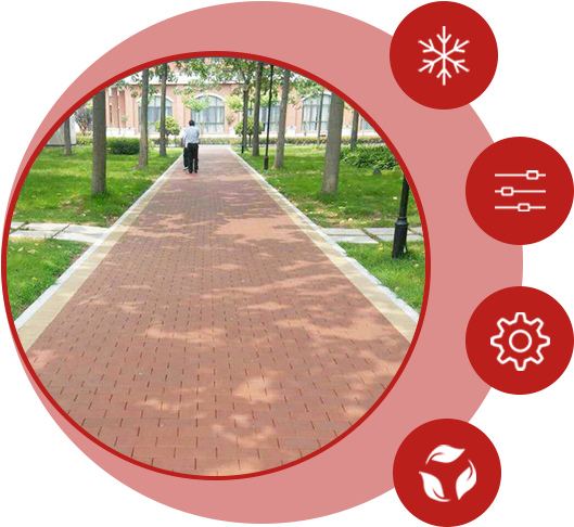 有優(yōu)異的吸水性能,并且表面并沒(méi)有想象中的光滑,下雨后雨水進(jìn)入磚體,粗糙的表面可以給行人和車(chē)有較好的摩擦力,使其在雨后有出色的防滑效果。